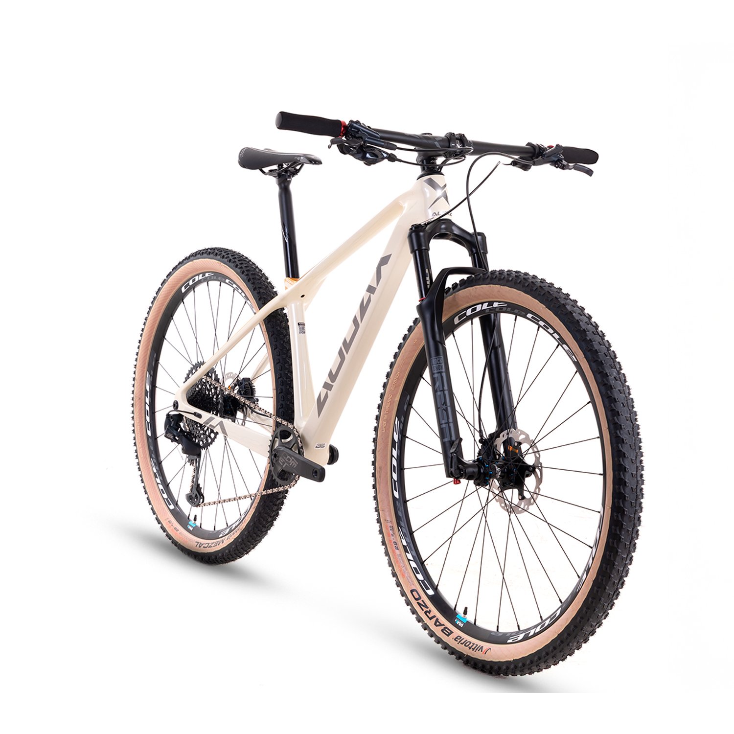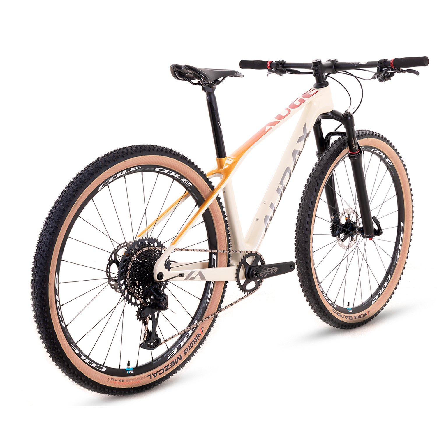 A Audax Auge 800 é uma MTB hardtail com quadro em carbono, grupo SRAM GX Eagle 12v, suspensão RockShox Reba e rodas Boost. Ideal para trilhas técnicas e alto desempenho em competições.