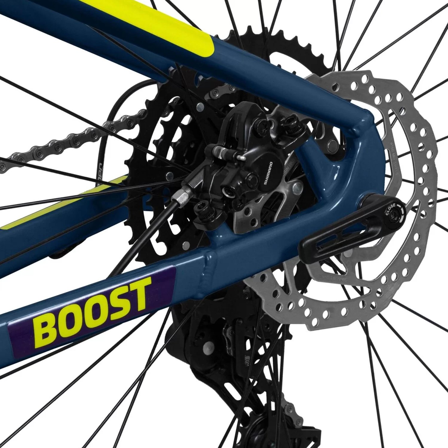 Tecnologia Boost: maior estabilidade, rigidez lateral e espaço para pneus mais largos.