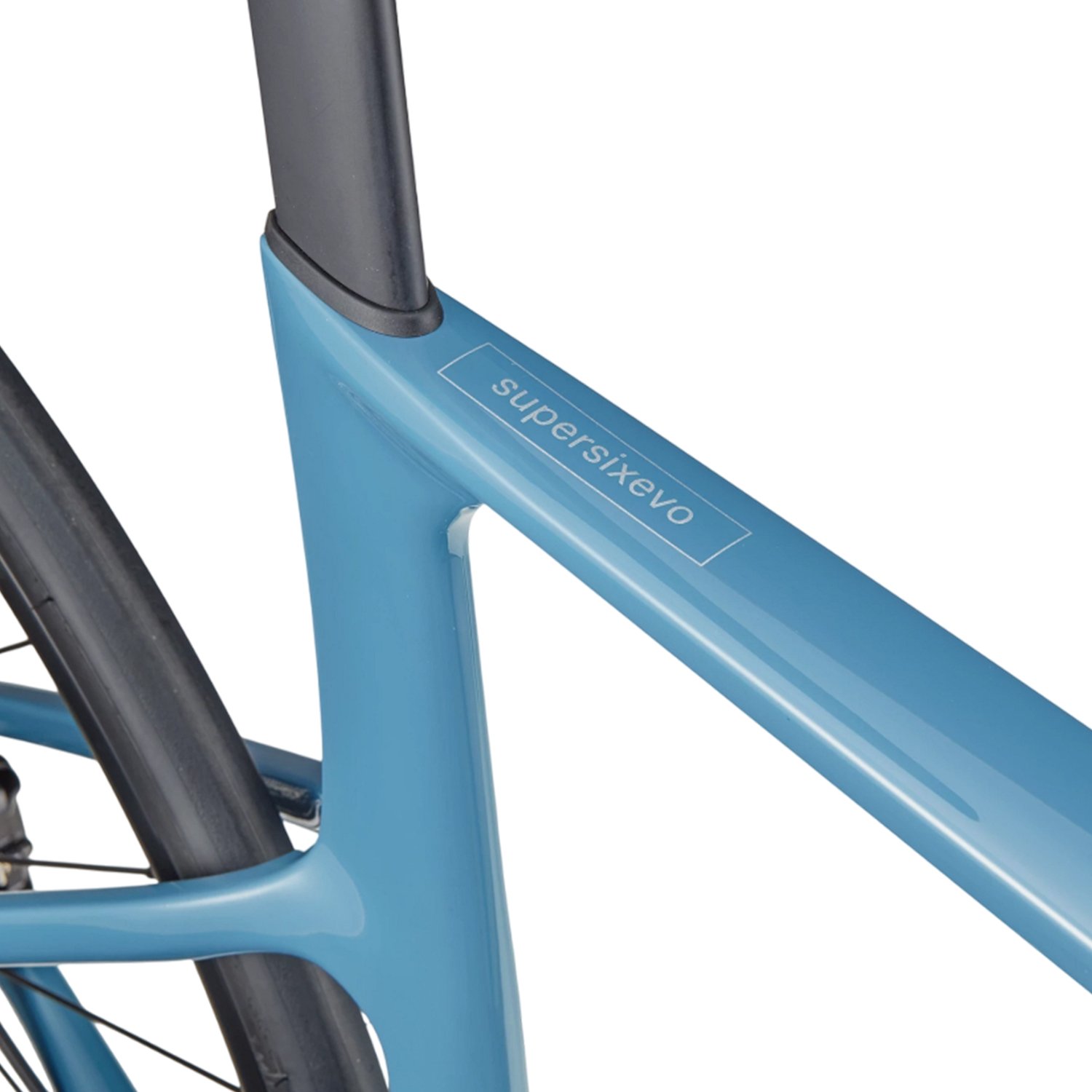 O quadro SuperSix EVO Carbon foi projetado com formas otimizadas que reduzem o arrasto e melhoram o desempenho em sprints e subidas.