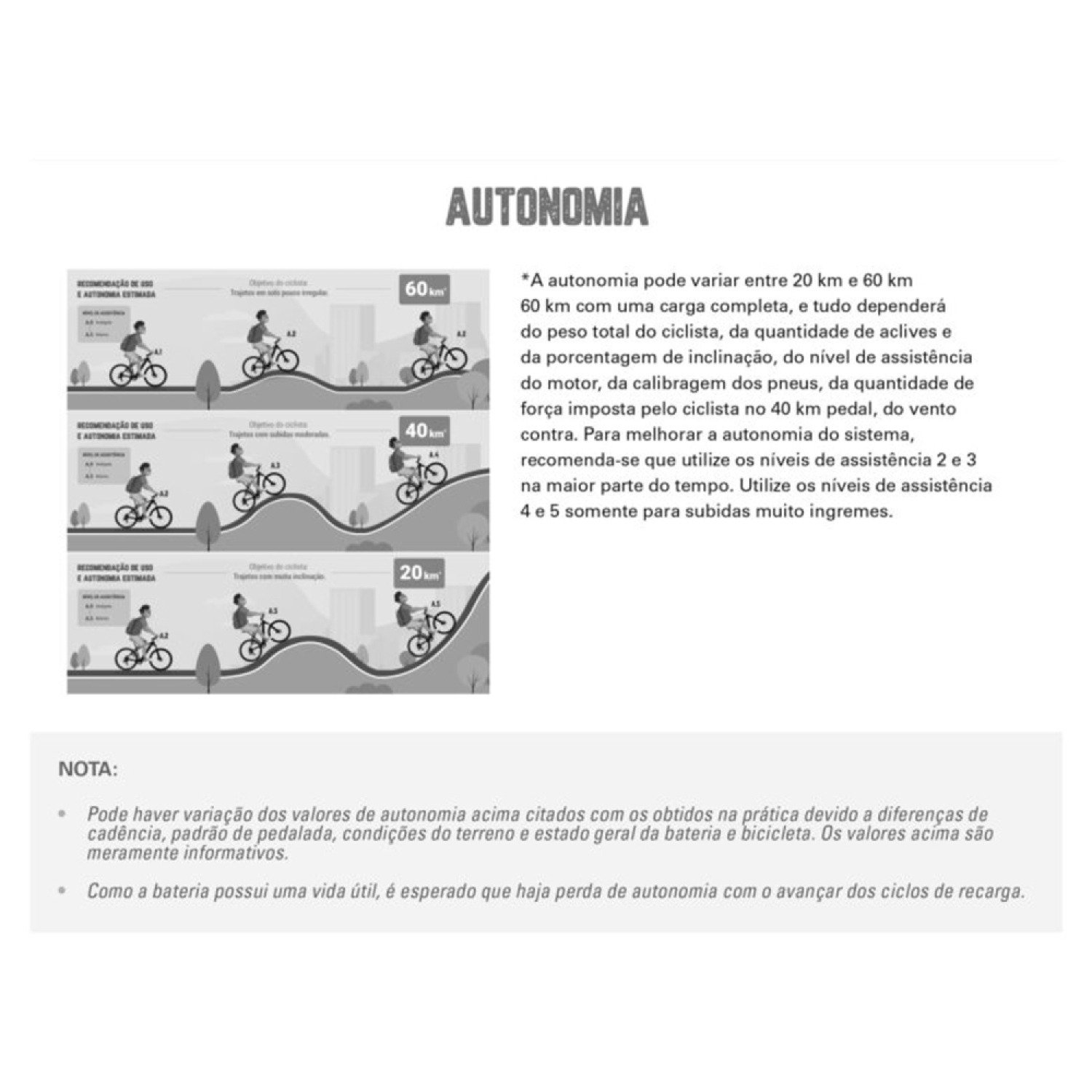 - Bateria / Tensão / Energia: LG ou SAMSUNG / 36V / 504Wh / 14Ah;
