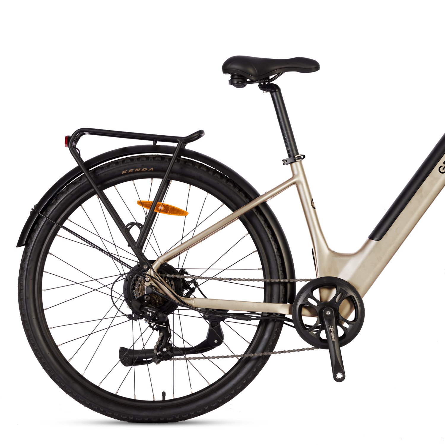 Conforto absoluto: geometria step-through facilita subir e descer da bike