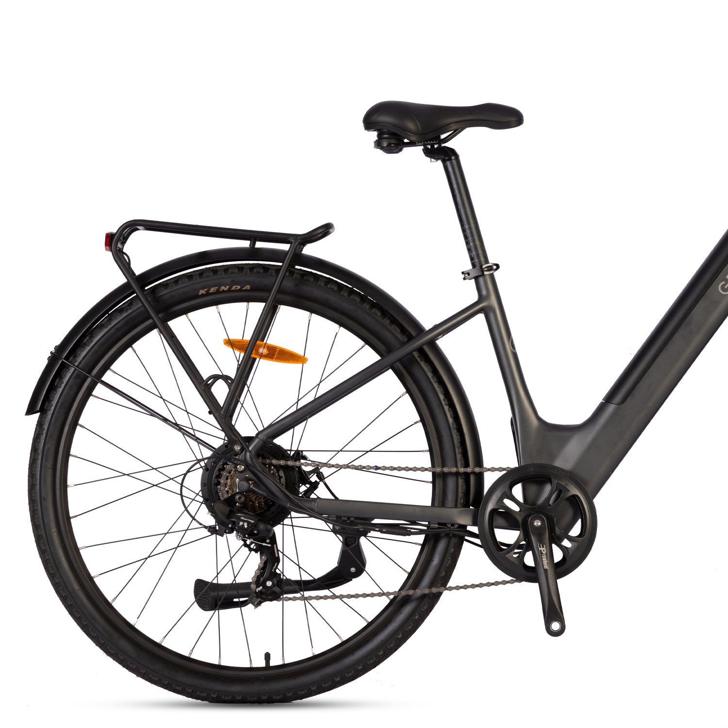 Conforto absoluto: geometria step-through facilita subir e descer da bike