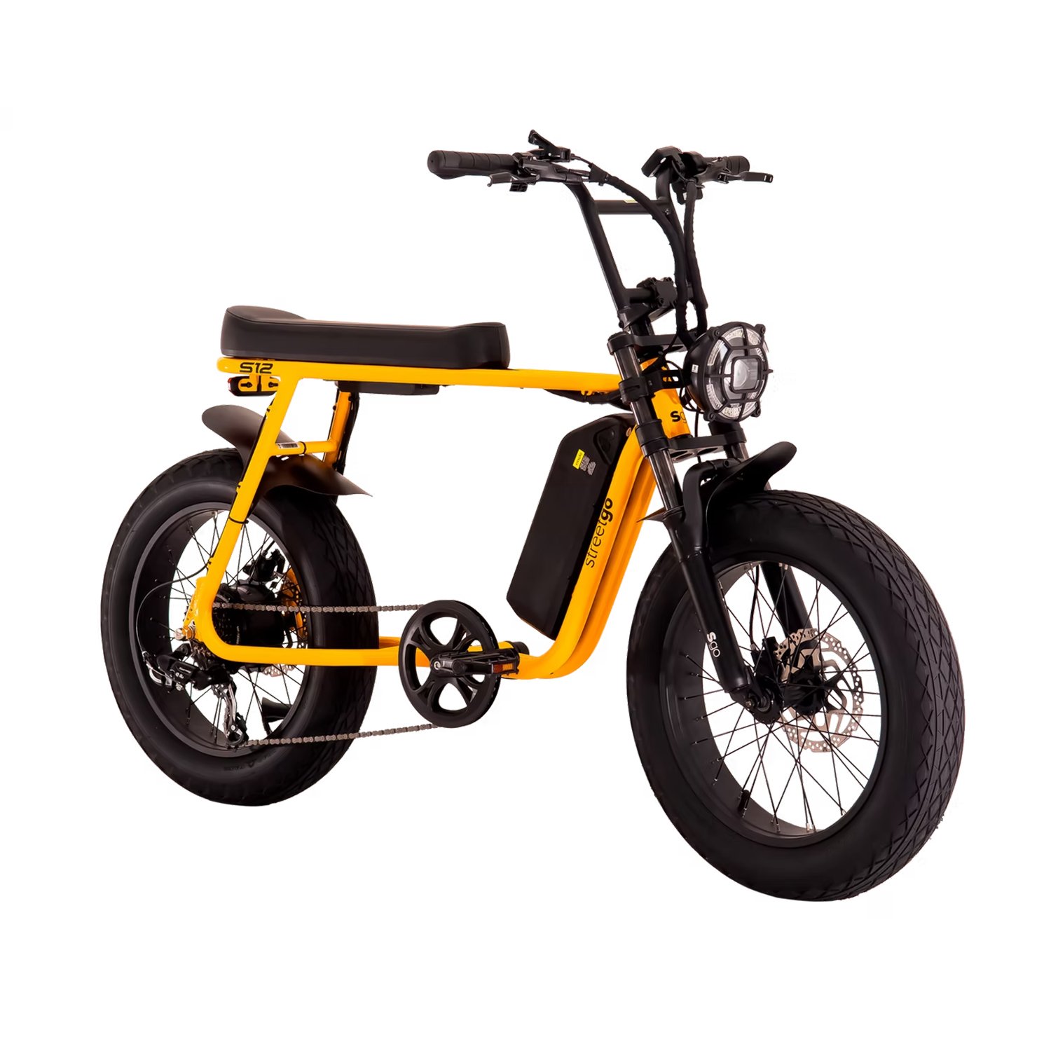 Bicicleta Elétrica StreetGo S12 – motor 750W, bateria 48V 720Wh, autonomia até 60km, freios Shimano hidráulicos e suspensão confortável. Ideal para mobilidade urbana.