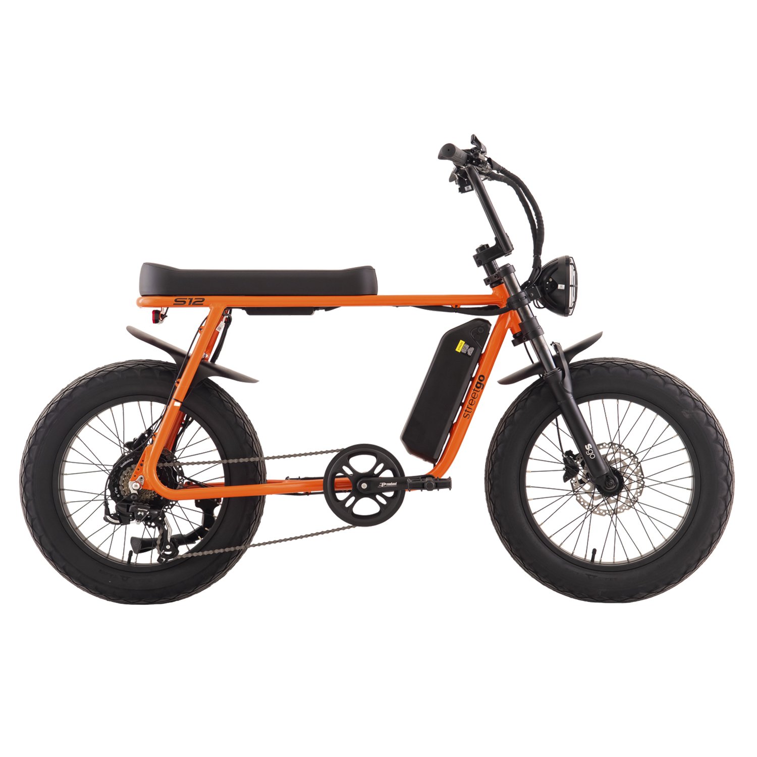 Bicicleta Elétrica StreetGo S12 – motor 750W, bateria 48V 720Wh, autonomia até 60km, freios Shimano hidráulicos e suspensão confortável. Ideal para mobilidade urbana.