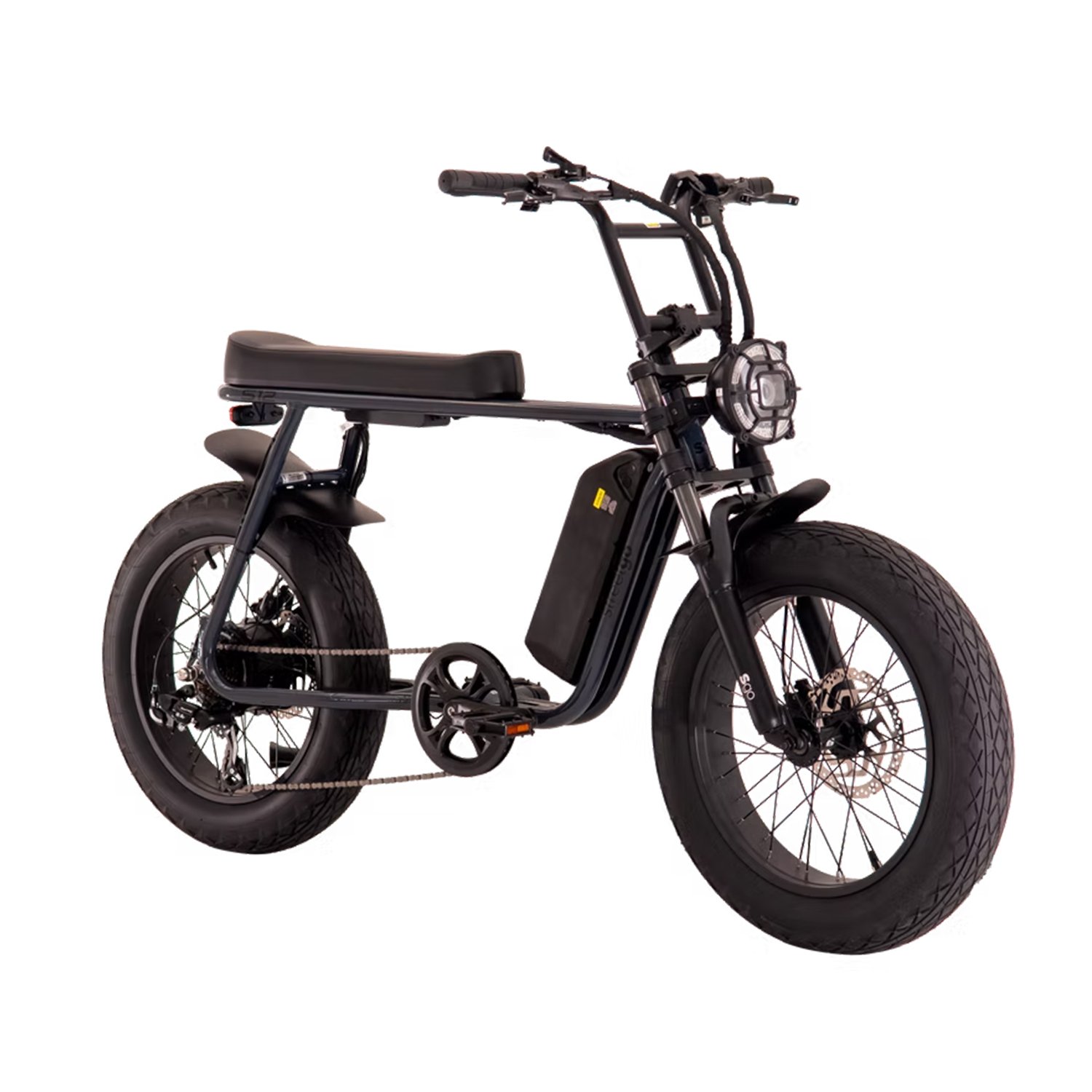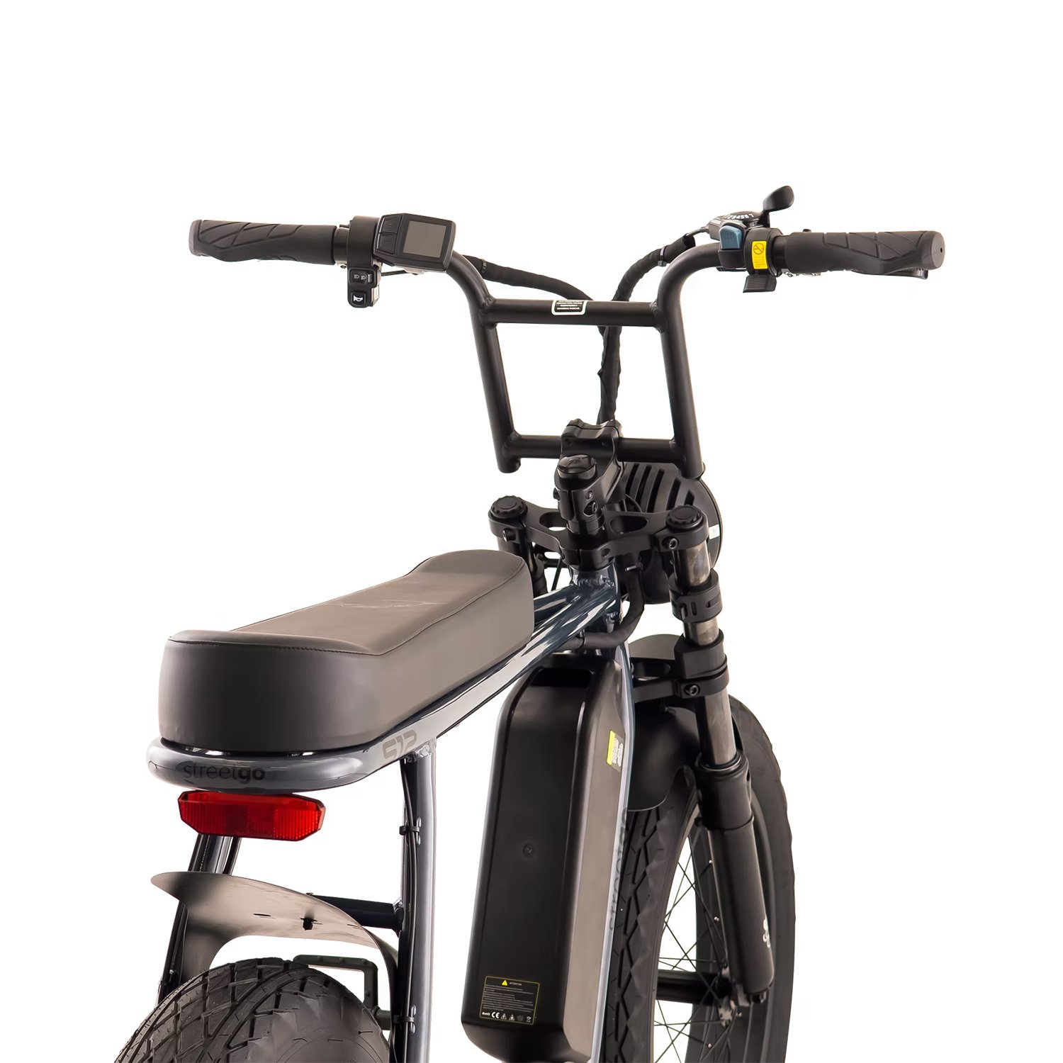 Design robusto e urbano: pneus 20x4.0” estilo fat bike para estabilidade em qualquer piso.