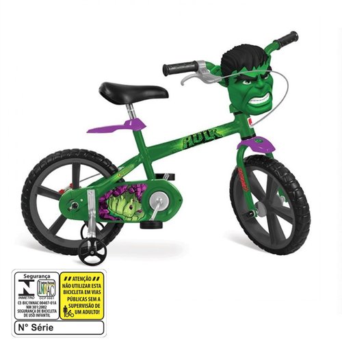 Pensando nisso a Bandeirante criou essa bicicleta linda do pesonagem dos desenhos animados Hulk.