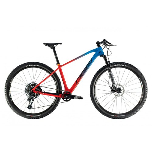 Essa máquina vem equipada com grupo GX de 12 velocidades, suspensão Fox Performance SC (STEPCAST) Black Coat Stanchions 32 29 com 100mm de curso e calçada com pneus Kenda Booster Pro 29x2.20.