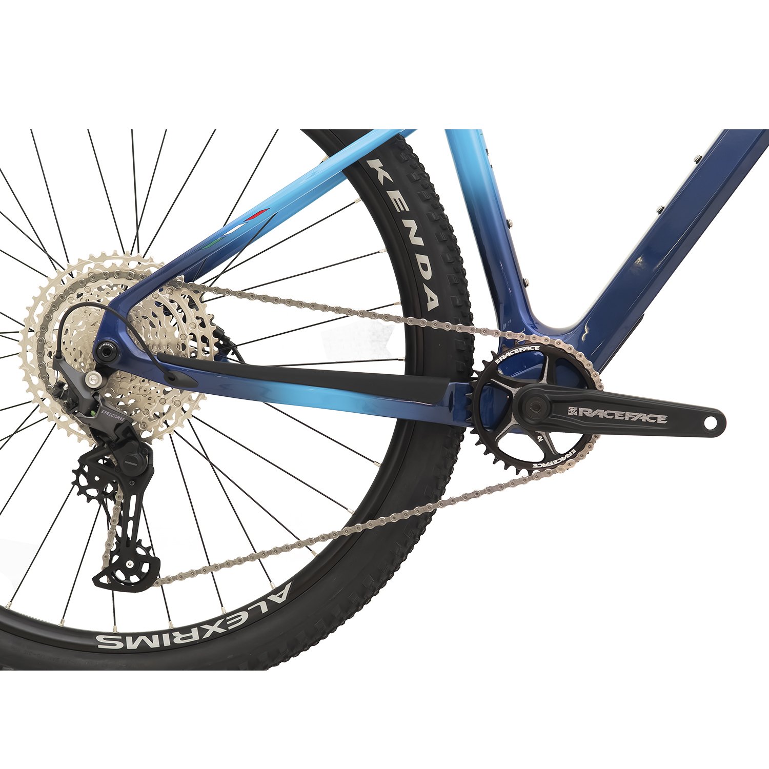 As rodas robustas, com cubos Shimano Deore e aros Alexrims, combinadas com pneus Kenda Booster Pro Tubeless Race, oferecem durabilidade e excelente tração. Os freios hidráulicos Shimano Deore asseguram frenagens seguras e precisas.