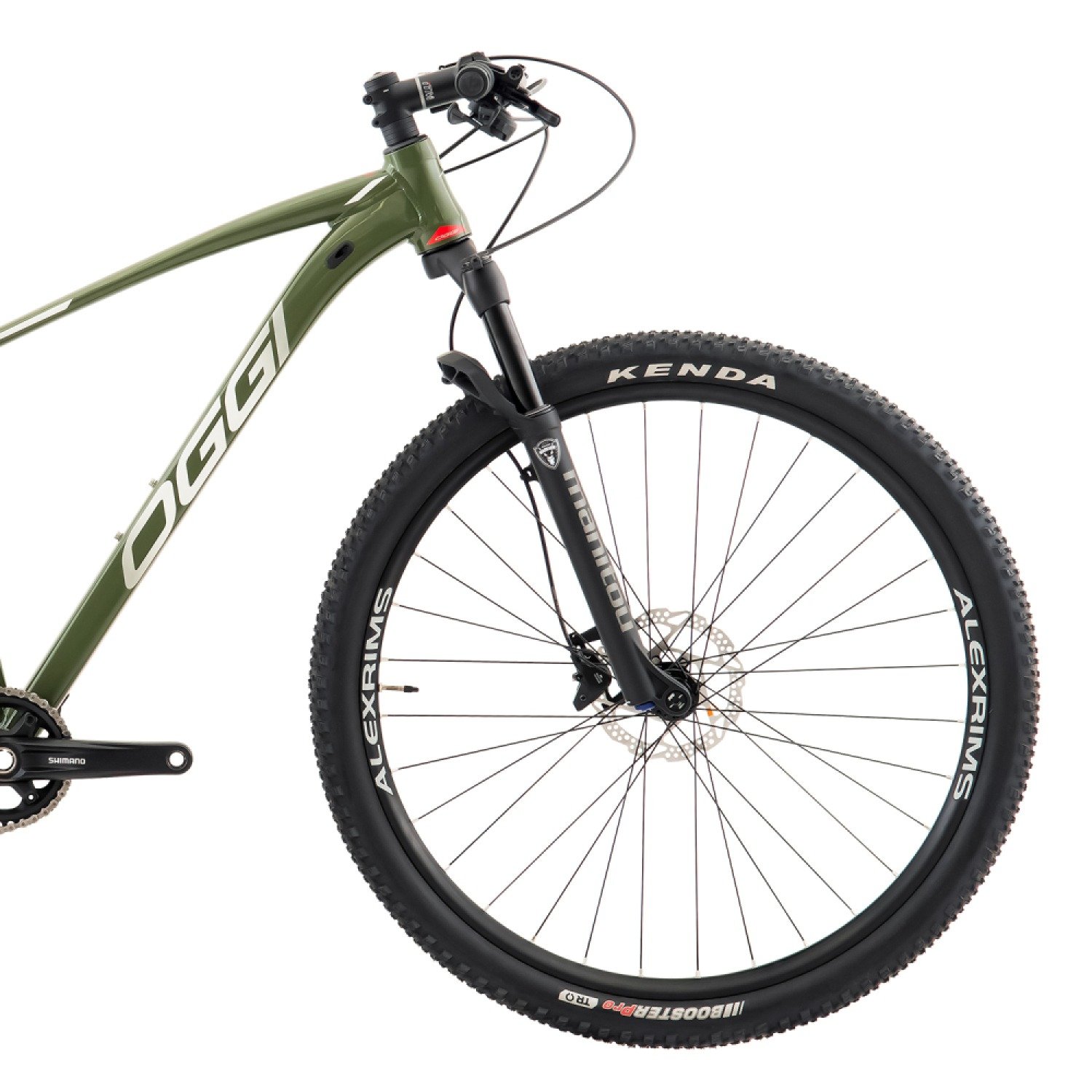 As rodas contam com cubos Shimano, aros Alexrims MD25 e pneus Kenda Booster PRO 29x2.20, garantindo aderência excepcional e resistência durante suas aventuras. Além disso, os pneus Kenda Booster Pro são Tubeless Race, oferecendo maior resistência a furos e um desempenho aprimorado.