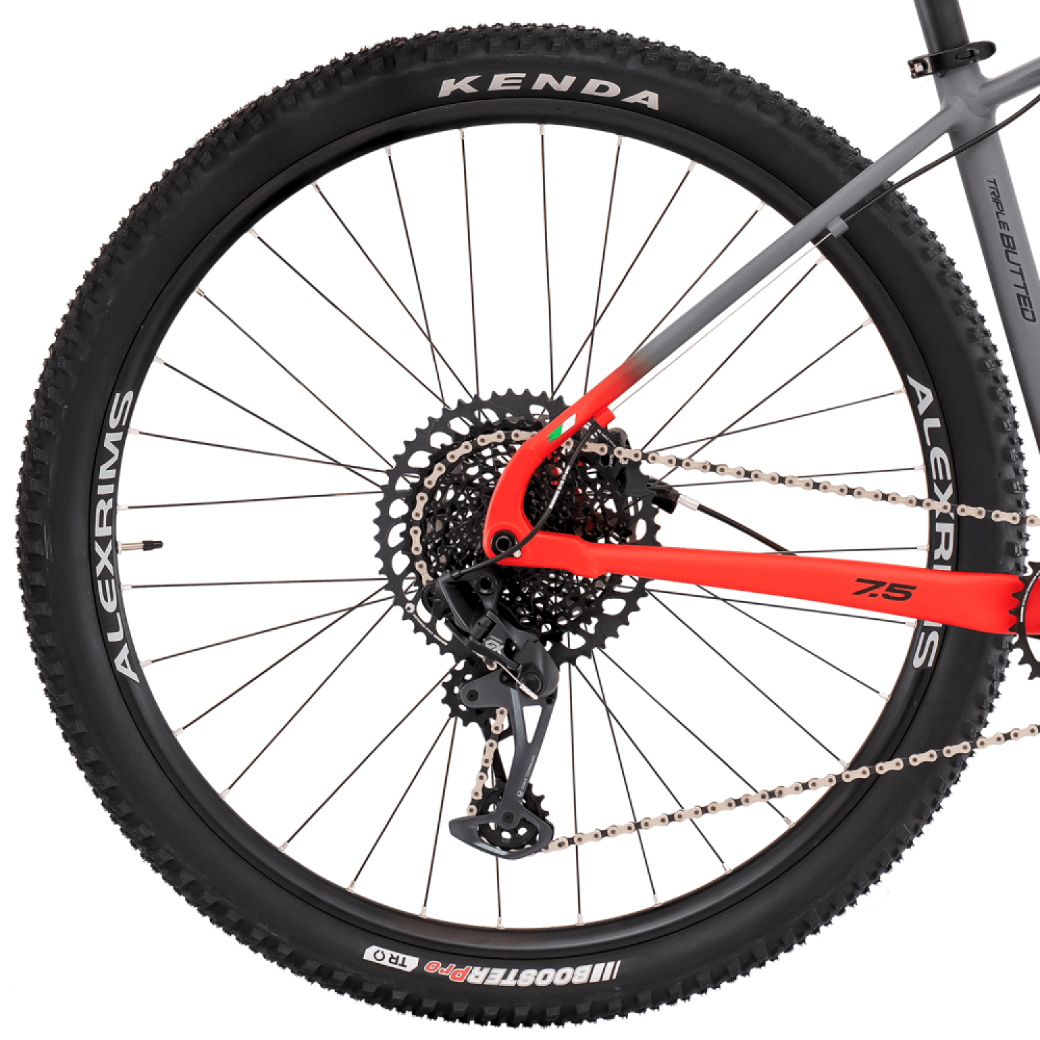 Um dos principais destaques da 7.5 2022 é seu quadro com a caixa de direção em 68 graus que proporciona uma melhora ao ultrapassar obstáculos além de maior estabilidade em velocidades mais altas. A transmissão da 7.5 conta com componentes das linhas SRAM GX e NX, com câmbio de 12 velocidades, suspensão Manitou Machete com 100mm de curso e cockipit ITM NH1. Além de tudo isso, a nova Oggi 7.5 2022 tem 14 meses de seguro totalmente grátis para o ciclista pedalar tranquilo.