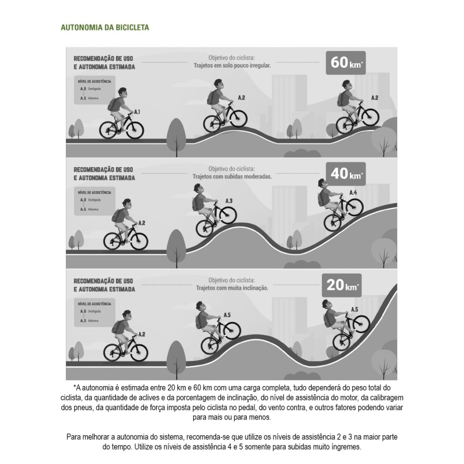 - Ciclocomputador: LED c/ 5 níveis de assistência e indicador de carga de bateria;