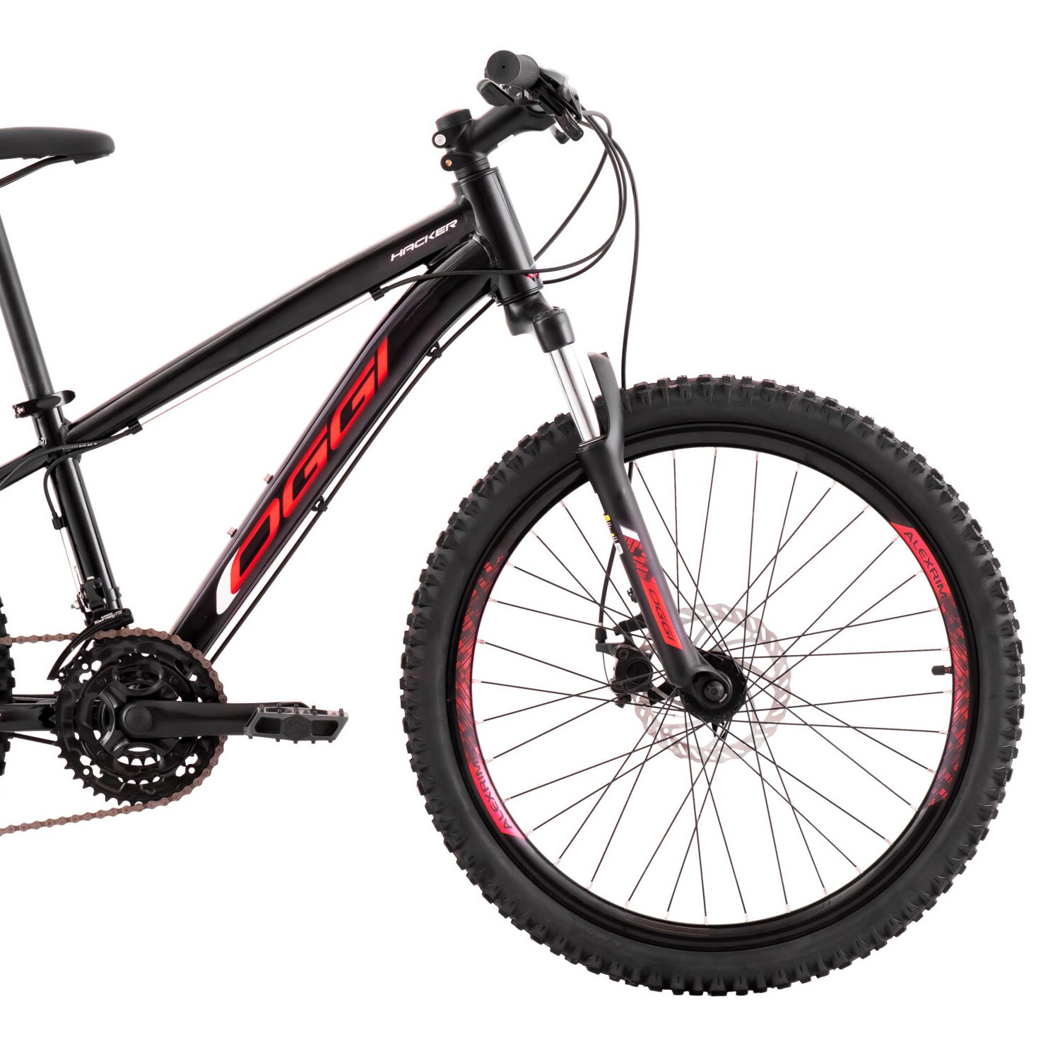 Bicicleta Oggi Hacker 24 2024: a escolha perfeita para jovens aventureiros! Com um quadro em alumínio 6061 t6 resistente e leve, esta mountain bike juvenil oferece ótimo desempenho tanto na terra quanto na cidade. Equipada com um grupo Shimano Tourney de 21 marchas, suspensão dianteira Oggi de 50mm, rodas aero de parede dupla em alumínio e pneus Kenda MTB 24", a Hacker 24 garante momentos de diversão e aventura para os pequenos. Seus freios a disco proporcionam segurança adicional, enquanto sua ergonomia foi projetada especialmente para jovens ciclistas. Descubra o prazer de explorar novos horizontes com a Hacker 24 da Oggi!