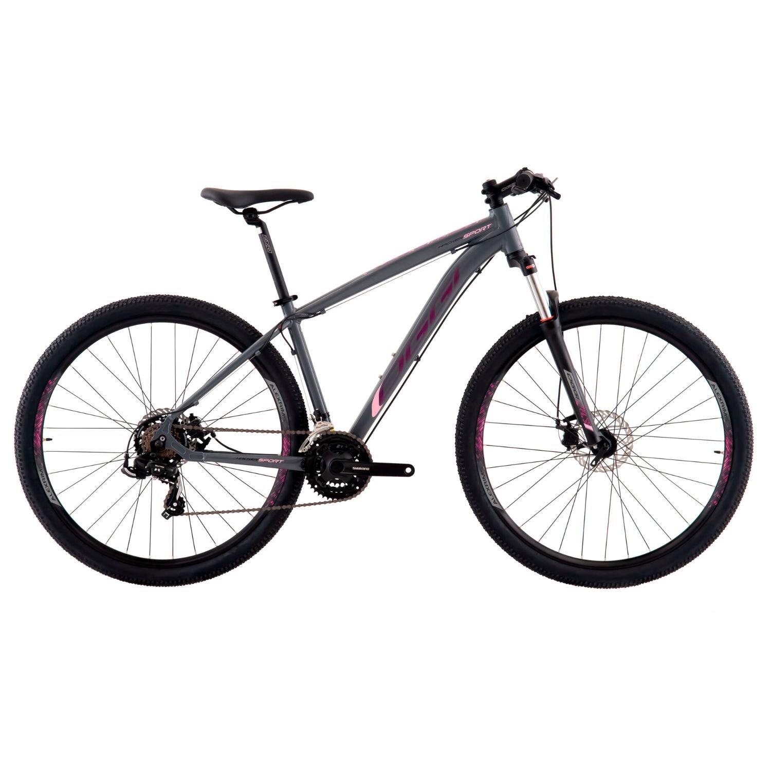 Bicicleta Oggi Hacker Sport 29” com 21 velocidades Shimano, freio a disco mecânico e suspensão de 100mm. Ideal para ciclovia, parque e estradão com excelente custo-benefício.