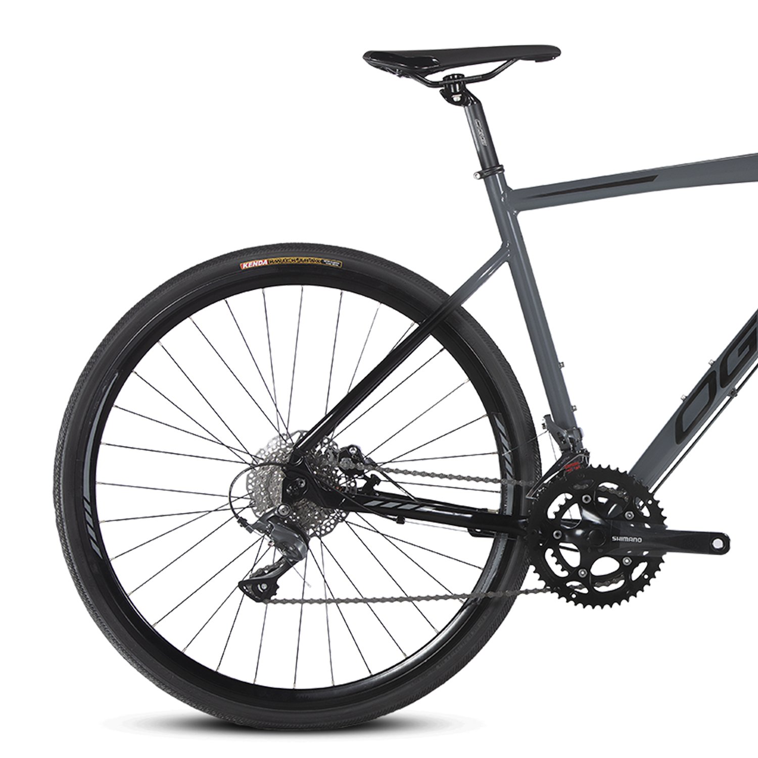 Rodagem mais suave e segura com pneus Kenda 700x32C de alto volume.