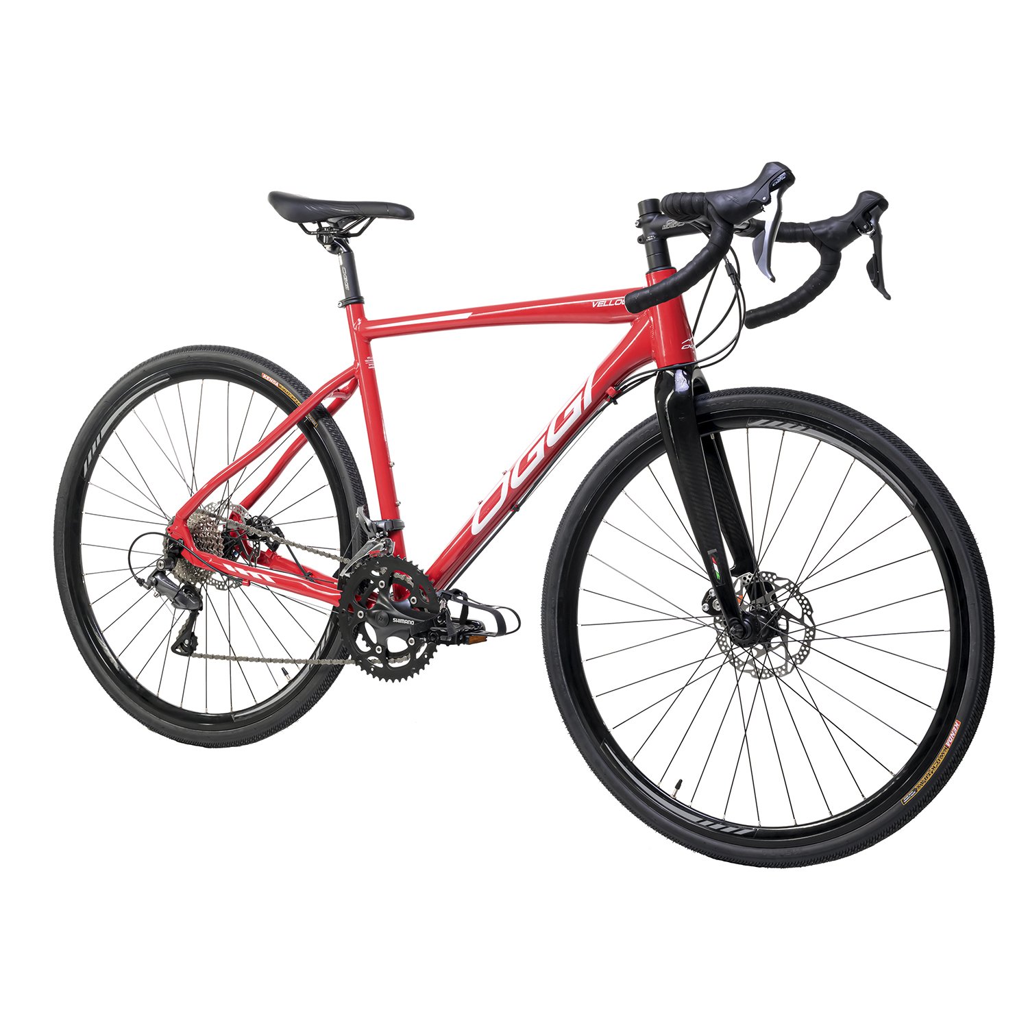 Bicicleta Oggi Velloce Disc 2026 com Shimano Claris 16v, freios a disco, quadro alumínio hidroformado e garfo carbono. Ideal para iniciar no ciclismo de estrada com segurança e performance.