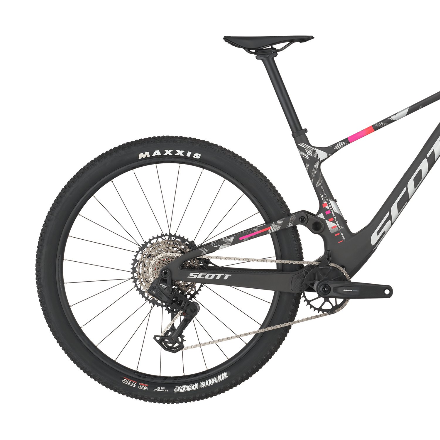 - Quadro: Spark RC Carbon HMF, Tecnologia de Suspensão Integrada, Flex Pivot / Ângulo de direção ajustável, Sistema de Integração de Cabos Syncros, BB92 / Interface UDH / 12x148mm com linha de corrente de 55mm;