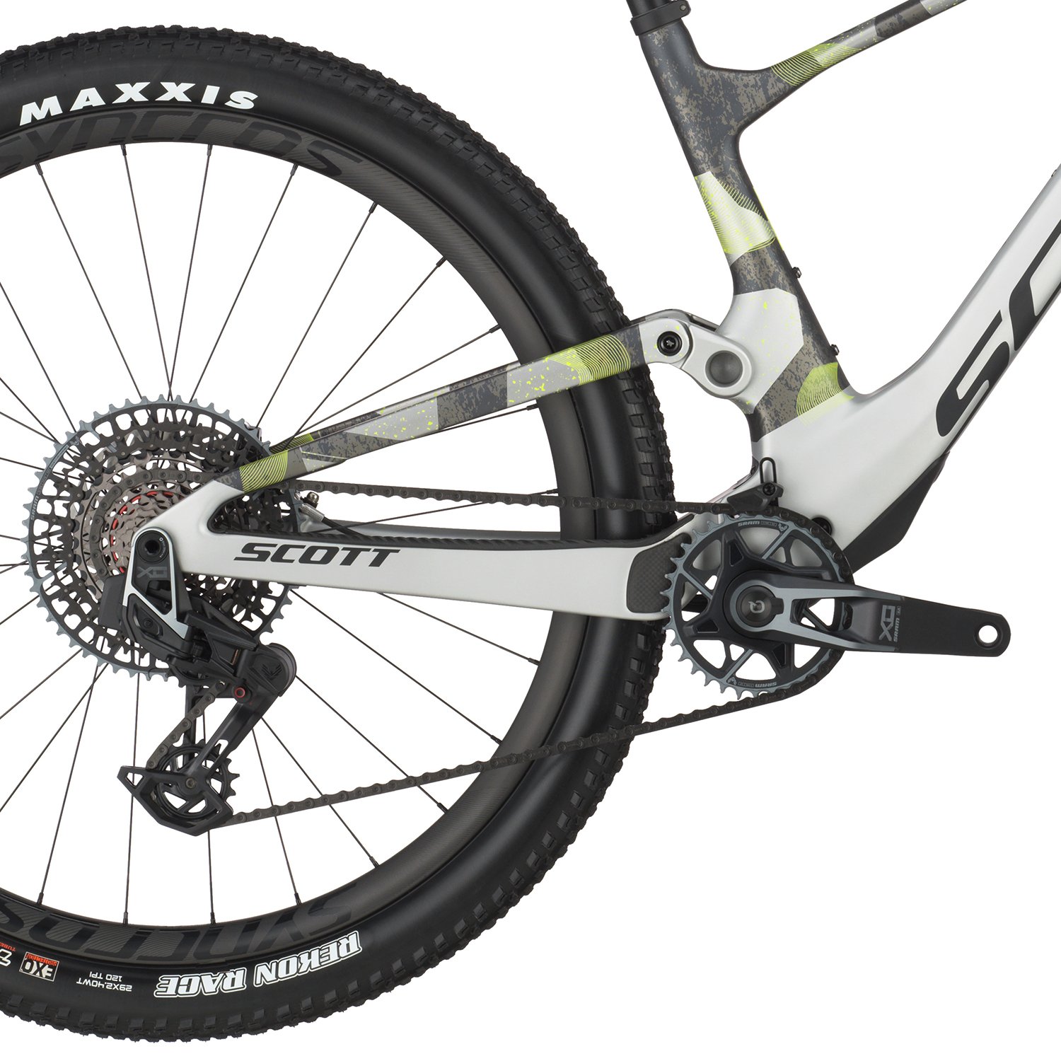 - Amortecedor traseiro (Shock): RockShox SIDLuxe Ultimate Flight Attendant Suspensão controlada eletronicamente personalizada 3 modos: Bloqueio, Pedal e Descida Sistema Solo Air / Ajuste de retorno (Rebound) / Bloqueio Curso de 120mm / Dimensão T165X45mm;