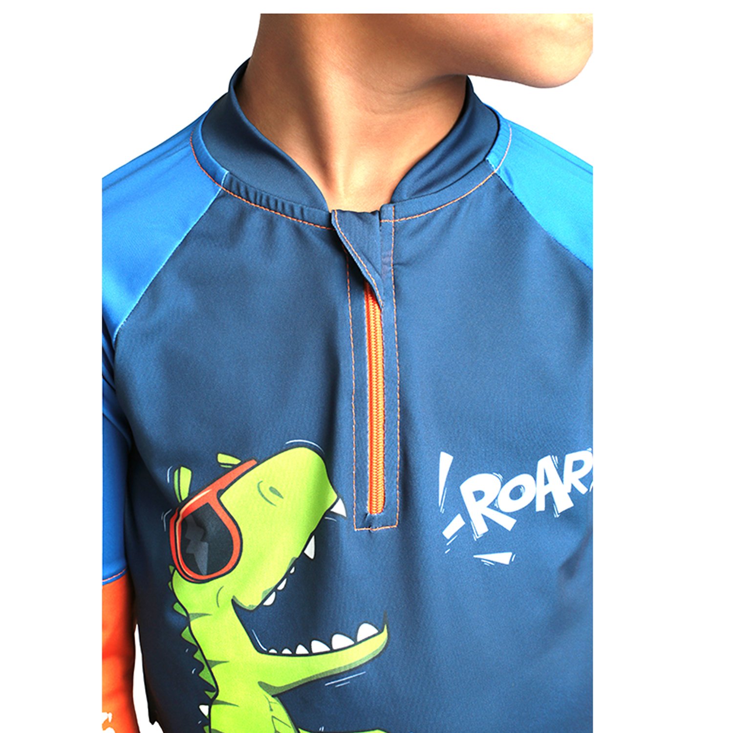 Camiseta Infantil Nathor Dinossauro com proteção UV 50+, ombreiras e cotoveleiras reforçadas. Conforto, segurança e liberdade para brincar o dia todo.