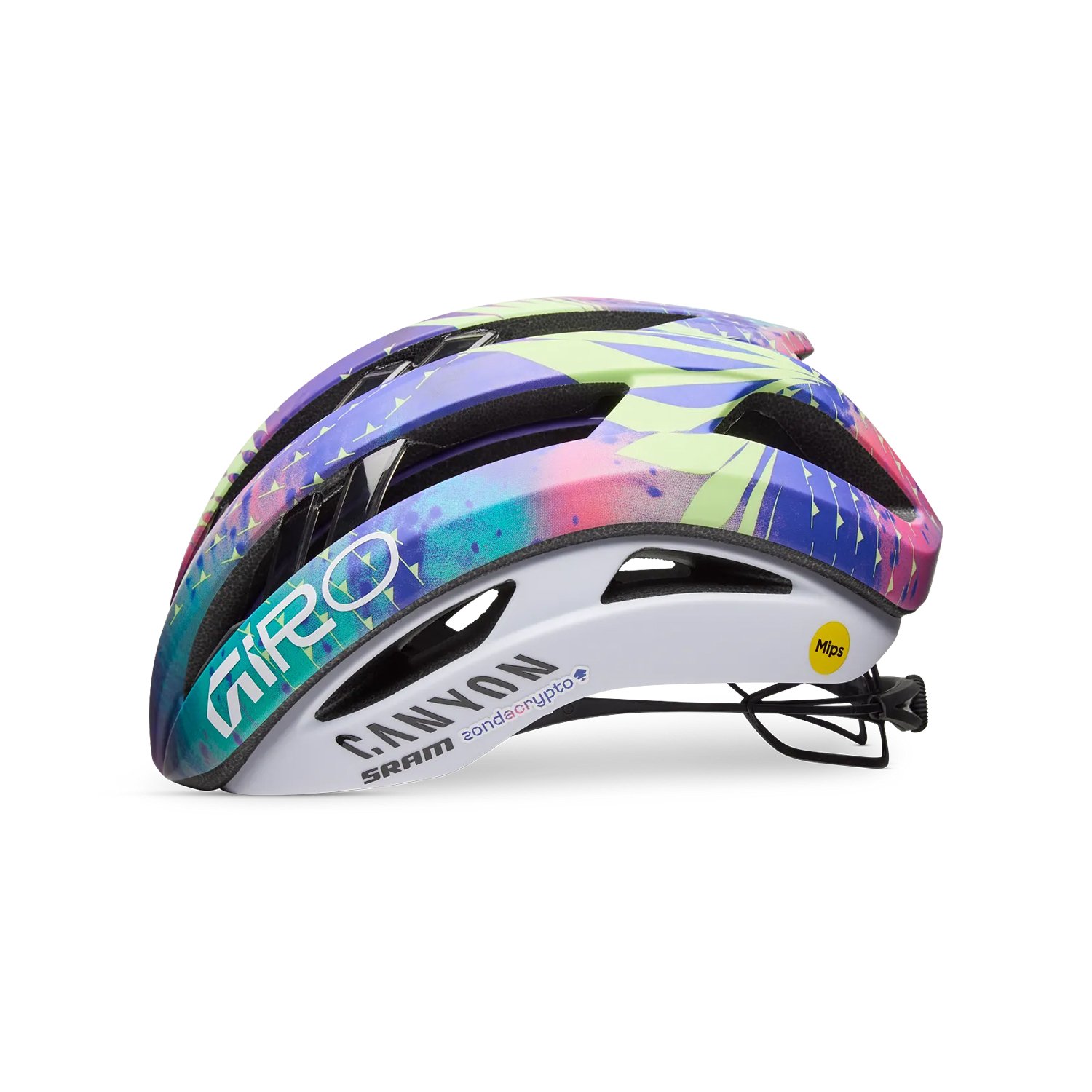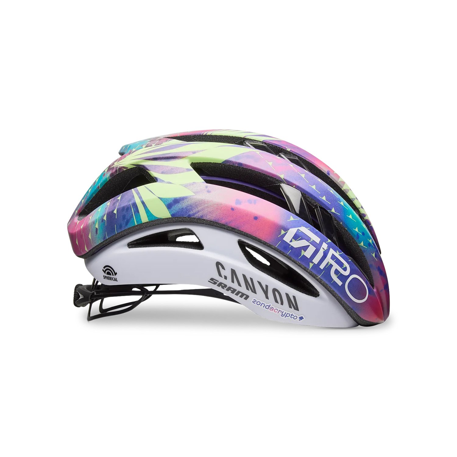 Capacete Giro Aries Spherical Mips Canyon//SRAM — edição especial com tecnologia esférica Mips®, ventilação extrema e sistema DryCore™. Leve, seguro e com design exclusivo da equipe Canyon//SRAM Racing.
