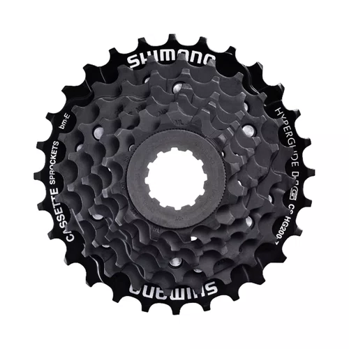 Cassete Shimano CS-HG200 7v 12-32D com tecnologia Hyperglide, trocas suaves e tratamento anticorrosão. Ideal para bikes urbanas, lazer e MTB recreativo.