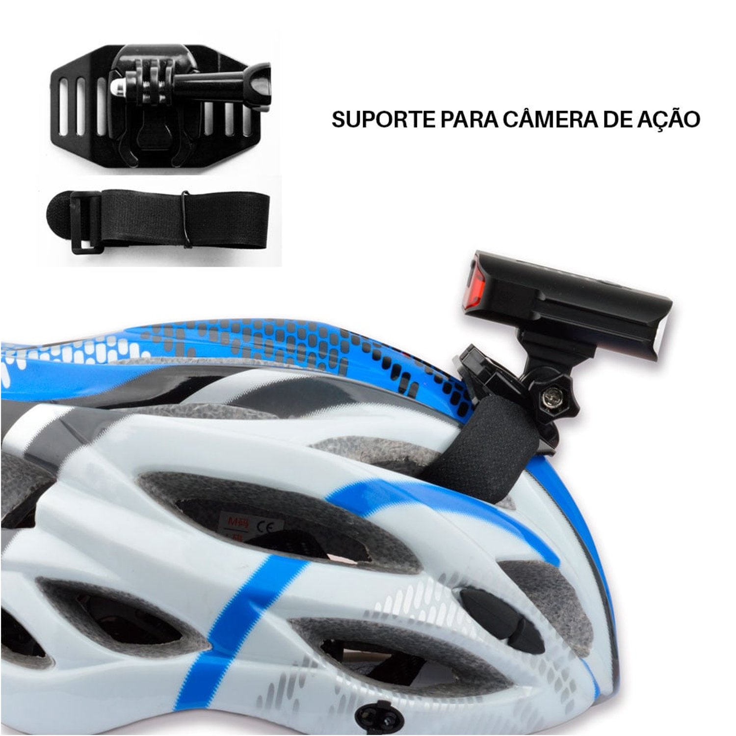 E o diferencial que muda o jogo: acompanha suporte para capacete, ampliando seu campo de iluminação e aumentando sua presença no trânsito.