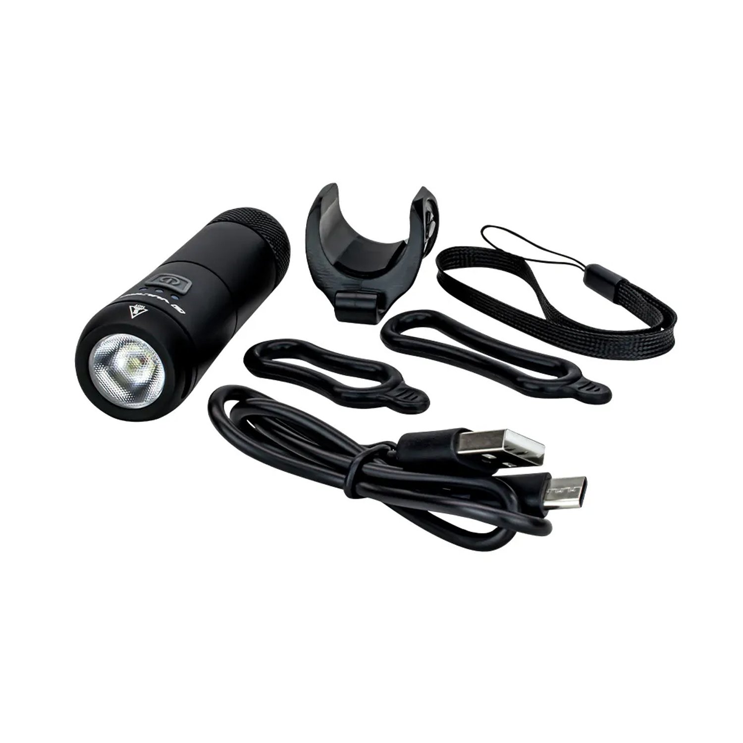 Farol de bicicleta com 700 lúmens, bateria recarregável substituível e corpo em alumínio anodizado. Iluminação potente, recarga rápida USB-C e resistência à água IP65 para qualquer pedal.