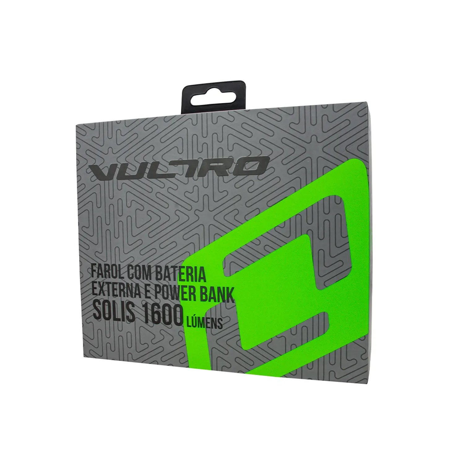 1 Farol Vultro Solis 1600 Lumens com Bateria Externa e Powerbank USB-C