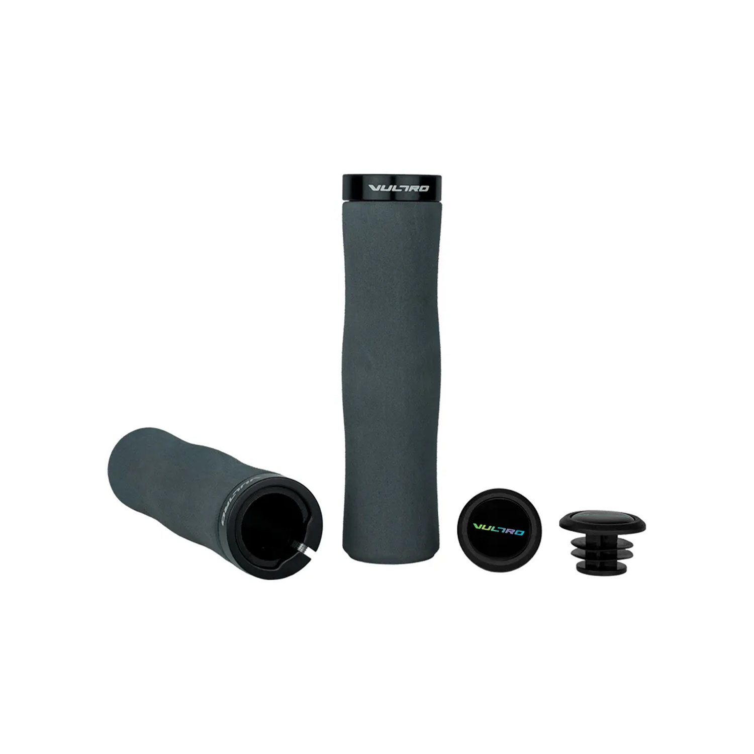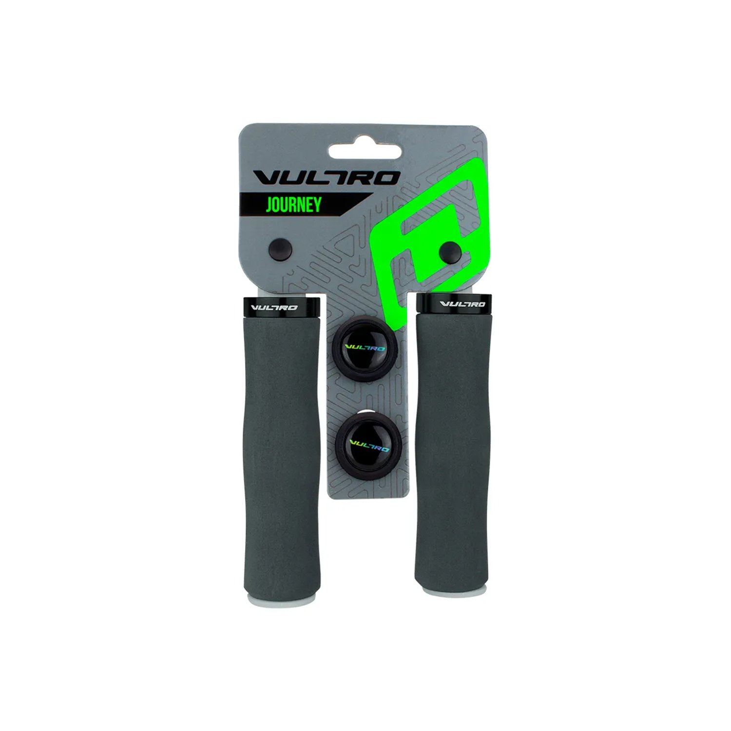 Manopla Vultro Journey em espuma com trava, 130mm e 108g. Conforto, fixação segura e controle total para MTB e trilhas.