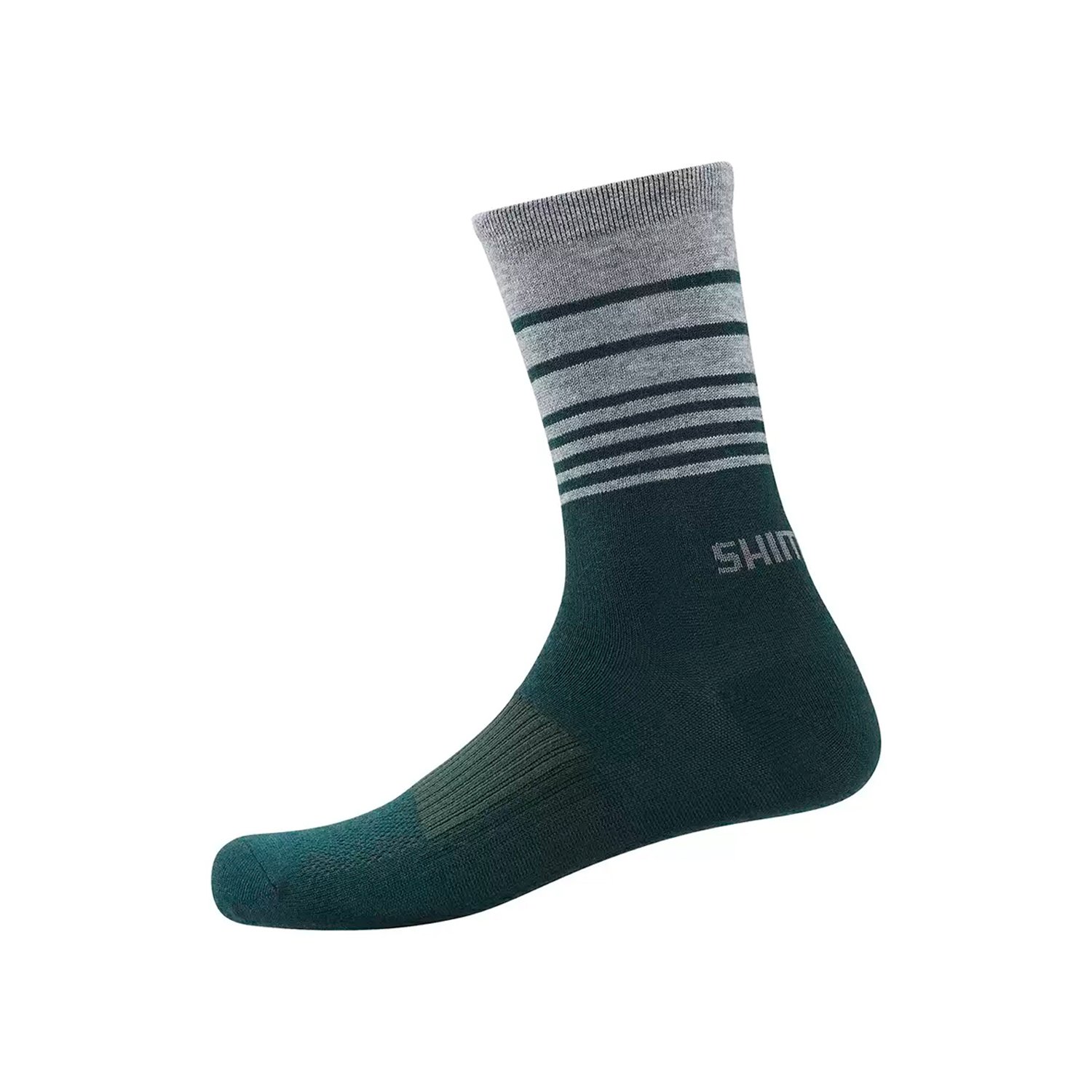 Meia de Ciclismo Shimano Original Wool Tall - Dark Green Stripes