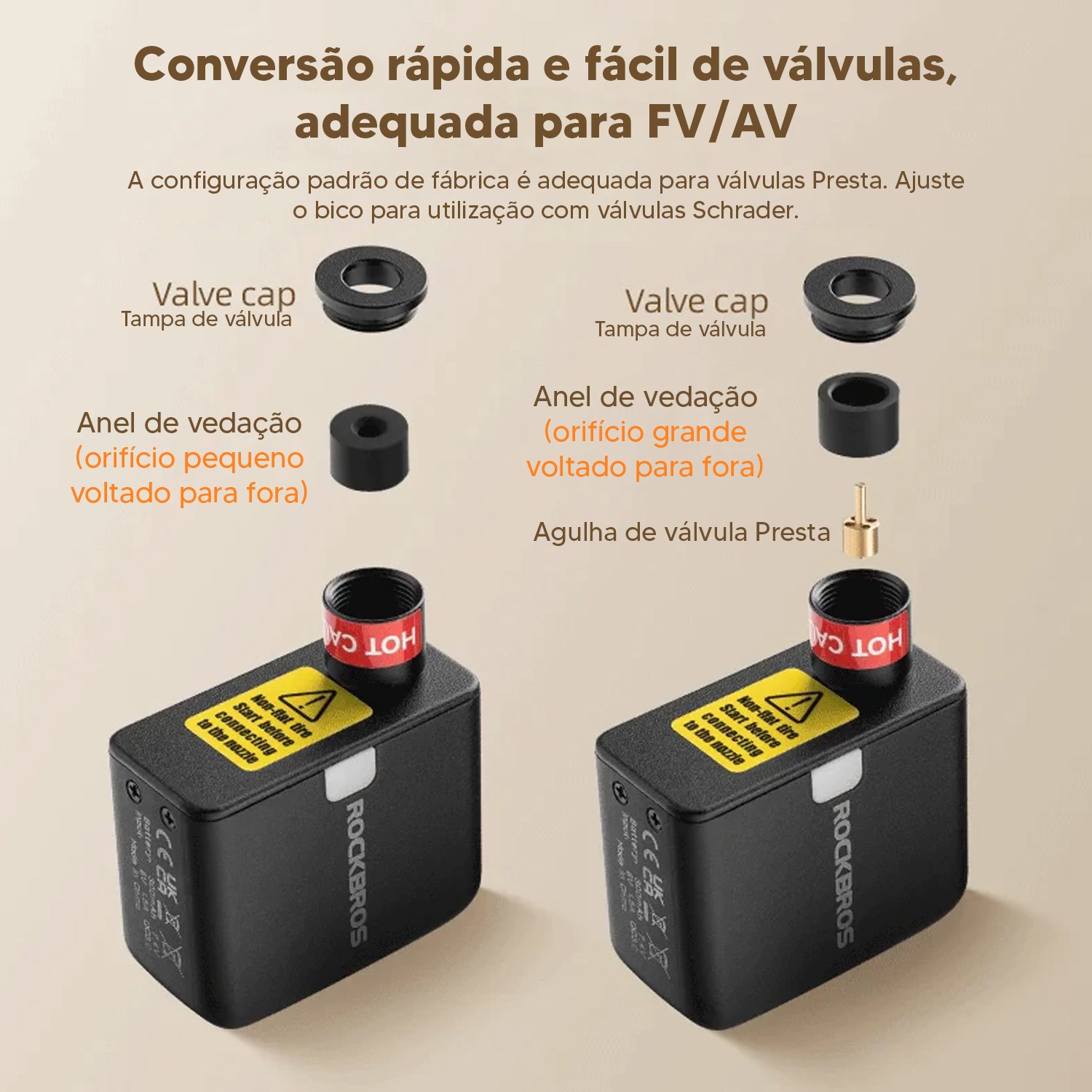 - 1 Mini Compressor de Ar Portátil RockBros 100PSI.