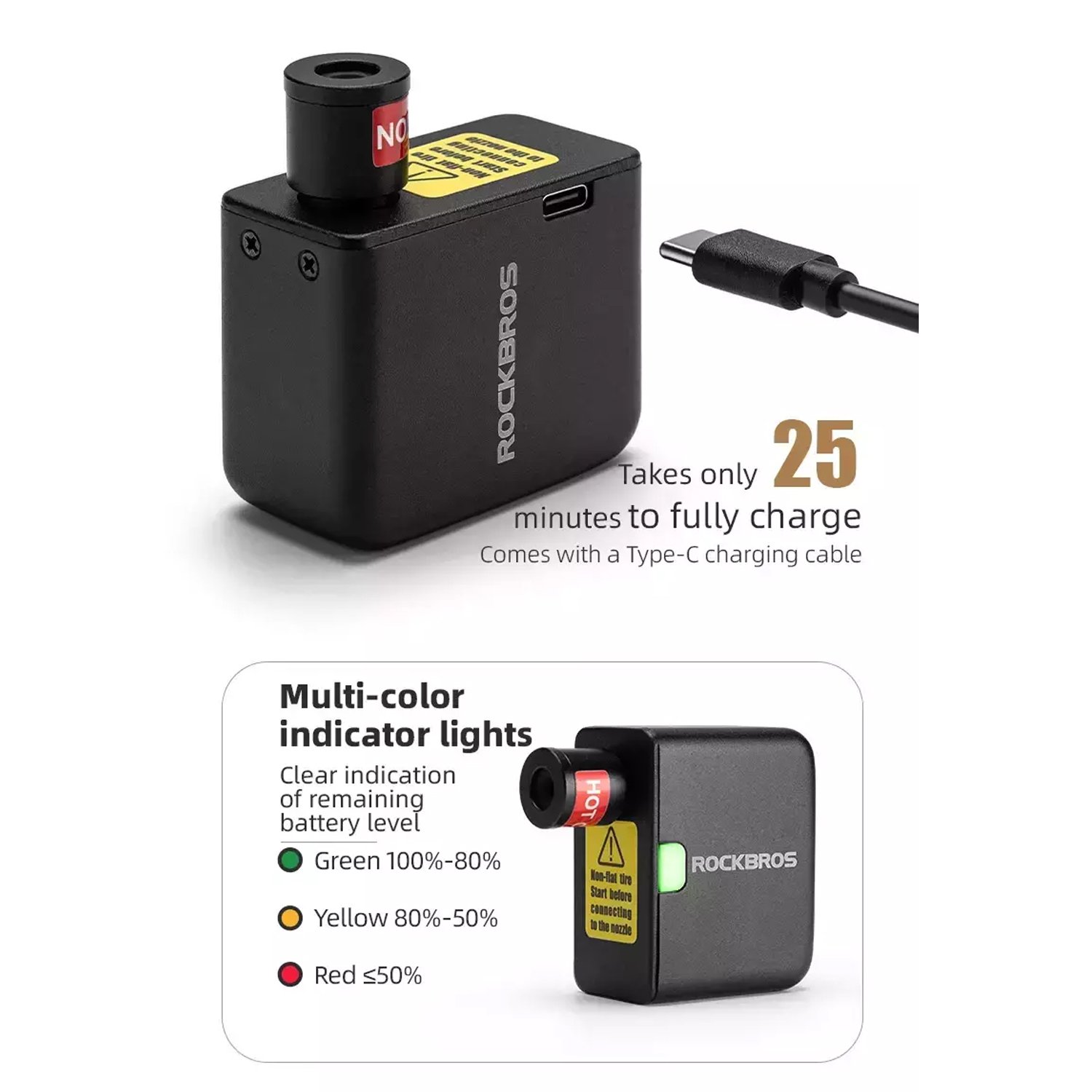 Mini Compressor de Ar Portátil RockBros 100PSI – Compacto, Rápido e Confiável