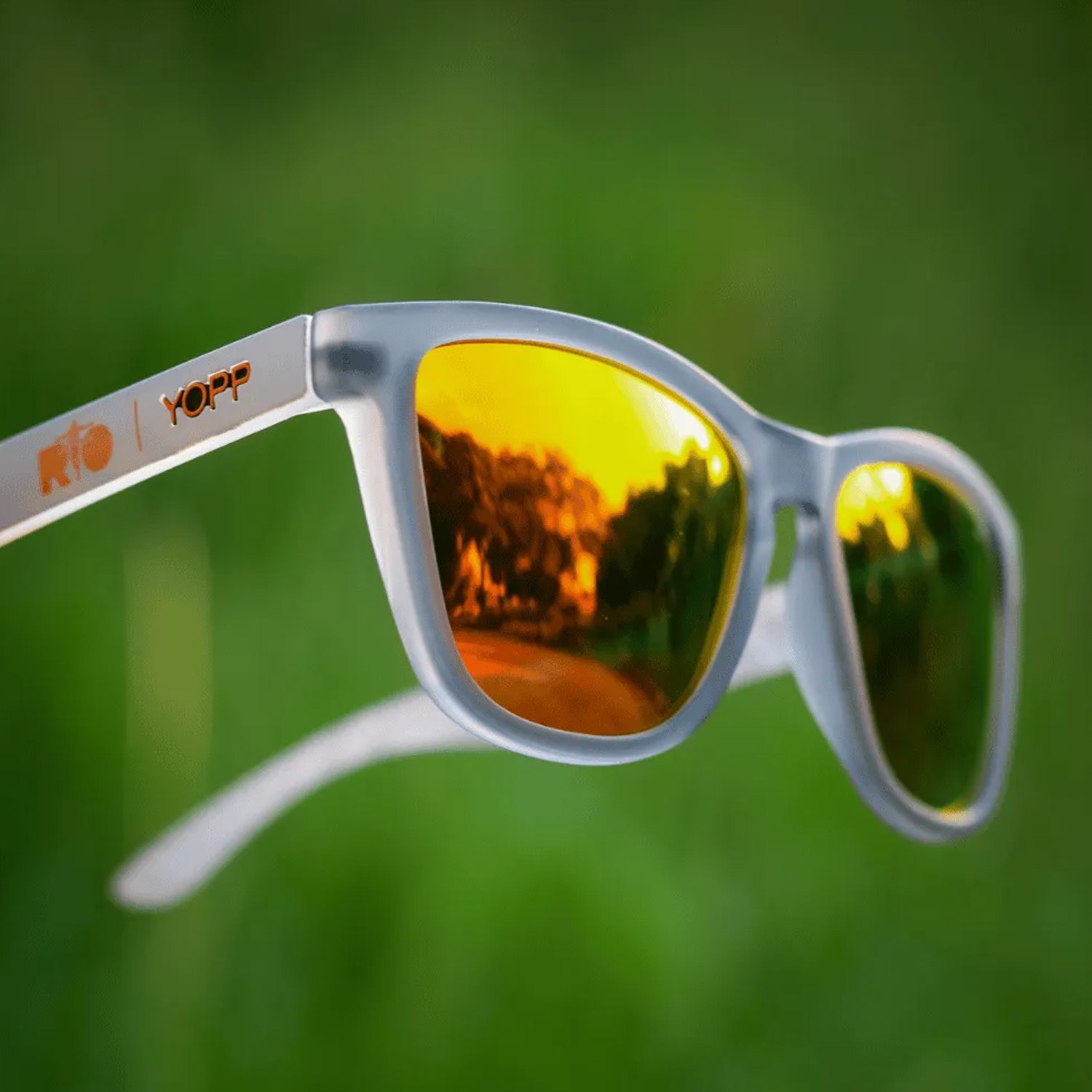 Óculos de Sol Yopp Polarizado MDR25 Gamboa – da coleção oficial Maratona do Rio 2025. Design clássico, lentes laranja espelhadas com proteção UV400 e armação estilosa.