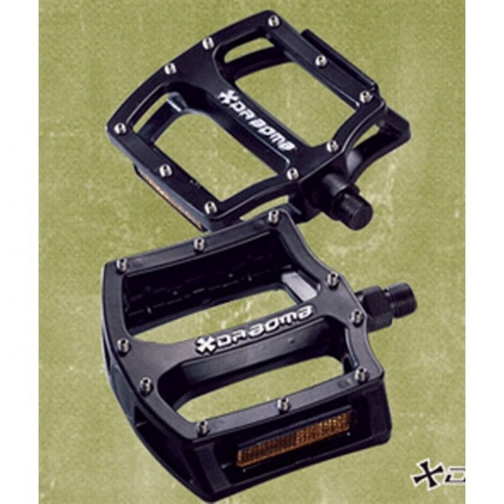 Construído em alumínio forjado, Plataforma com concavidade dupla, Rolamentos selados substituíveis, Cada pedal tem 20 pinos substituíveis.Eixo de Cr-Mo de 9/16”, peso 680g / par.