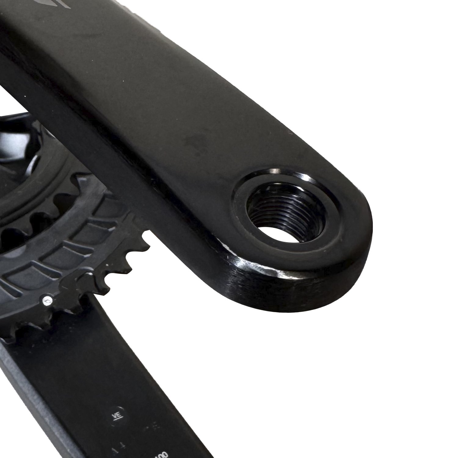 O acabamento em preto brilhante confere ao pedivela um visual premium, complementando qualquer bicicleta de estrada.