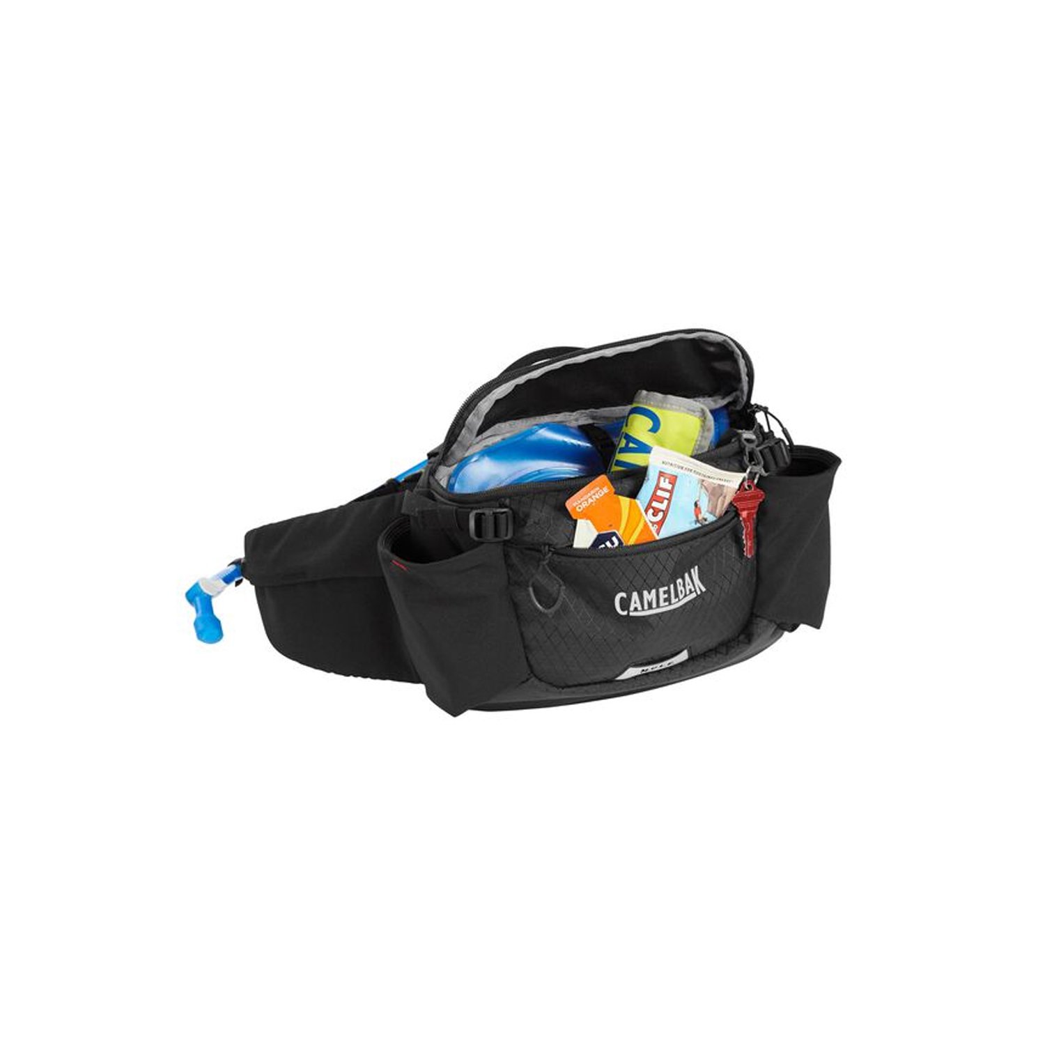 Entre as características destacam-se o reservatório Crux® lombar, que fornece 20% mais água por gole, e a organização integrada de ferramentas, que mantém tudo no lugar certo e de fácil acesso. Os bolsos duplos para garrafas são perfeitos para garantir hidratação extra, enquanto a armadilha de tubo magnético facilita o uso do tubo de hidratação sem complicações. A refletividade garante segurança, e o painel traseiro Air Support™ proporciona respirabilidade superior. O cinto de quadril com carga e as tiras de compressão de carga aumentam o armazenamento e mantêm seus itens seguros e próximos ao corpo. Seja para uma camada extra de roupa no bungee overflow ou para manter sua jaqueta leve segura, a Pochete Camelback Mule 5 é sua aliada perfeita na trilha.