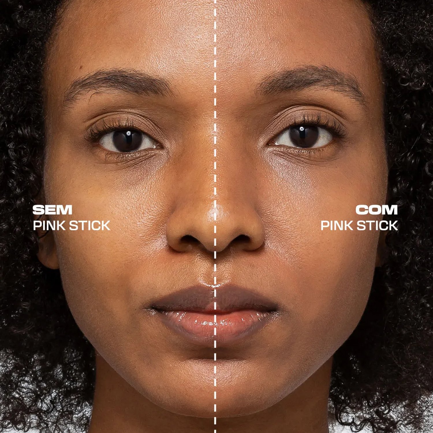 Protetor Solar Pinkcheeks Pink Stick FPS 90 com FPUVA 70, resistente à água e suor, com Vitamina E, cobertura leve e acabamento natural. Protege, uniformiza e preserva o colágeno da pele.
