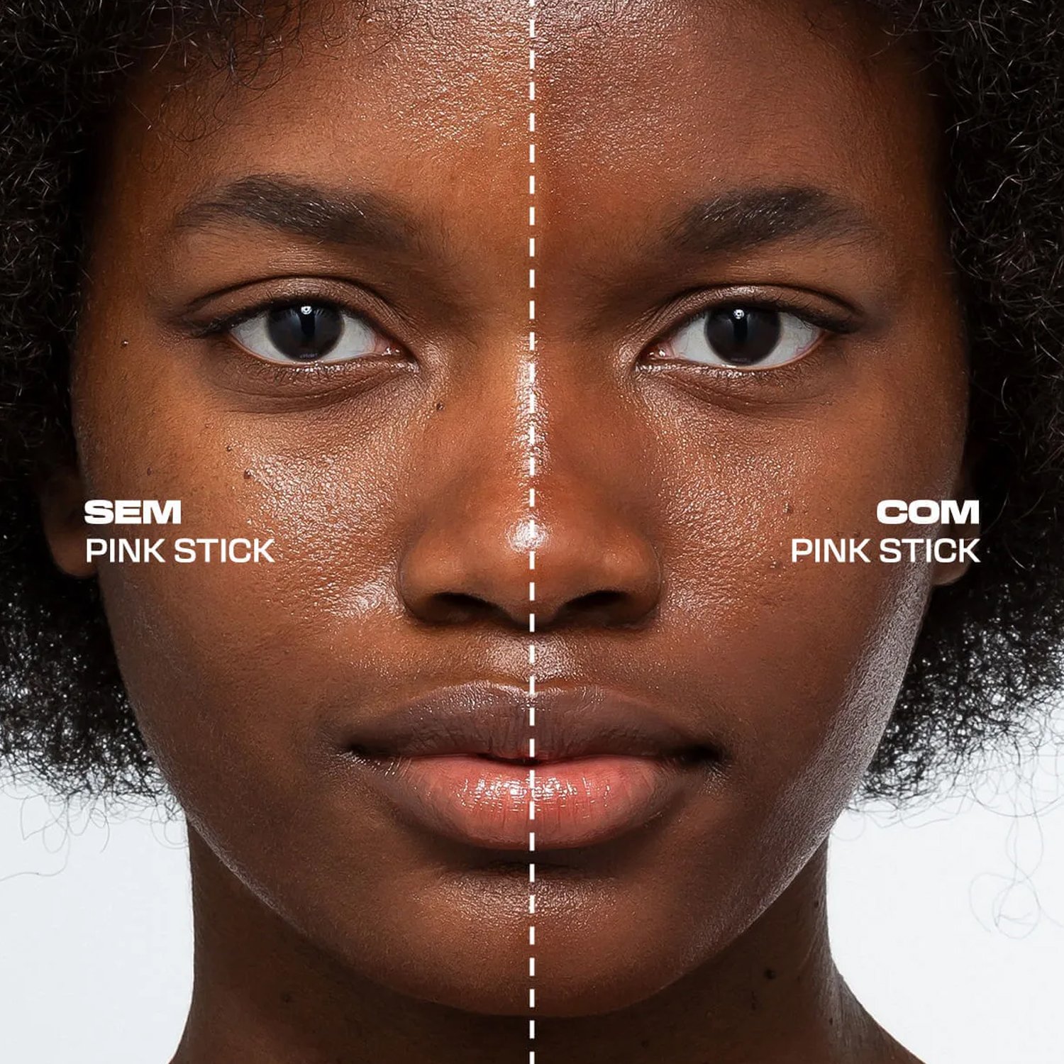 Protetor Solar Pinkcheeks Pink Stick FPS 90 com FPUVA 70, resistente à água e suor, com Vitamina E, cobertura leve e acabamento natural. Protege, uniformiza e preserva o colágeno da pele.