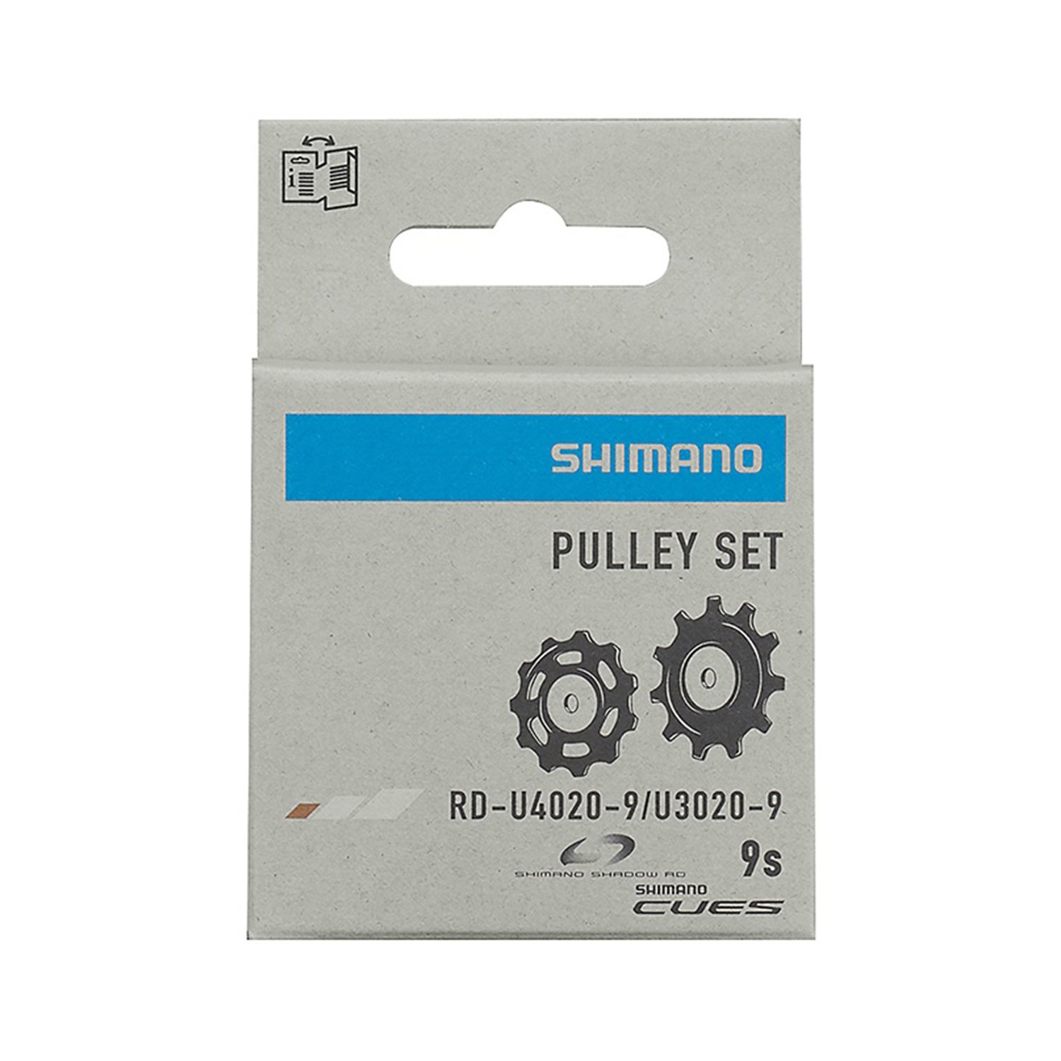 Par de roldanas originais Shimano compatíveis com os câmbios traseiros CUES RD-U4020-9 e RD-U3020-9. Peça de reposição ideal para manter o desempenho e a durabilidade do sistema de transmissão da sua bike.