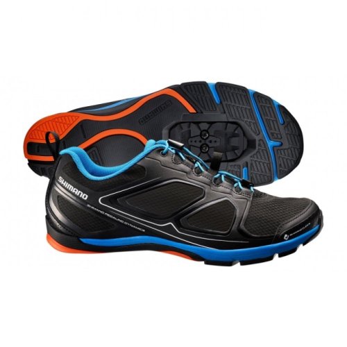 Compatível com tacos no padrão SPD, sobretudo em pedais da nova linha Shimano Click'R (PD-T400, PD-