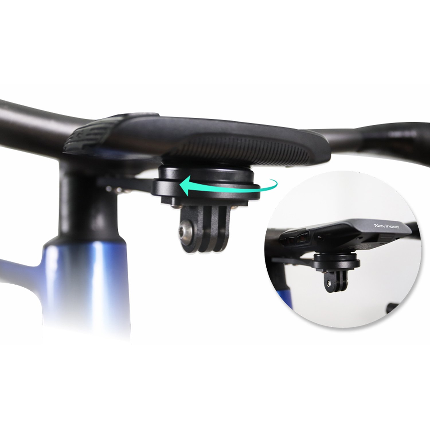 Suporte de GPS Navihood C3 para guidão integrado, em alumínio 7075, leve (40g), resistente e compatível com Garmin, Navihood e acessórios como GoPro e farol.