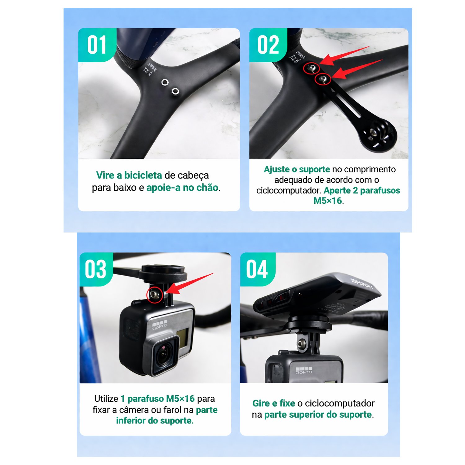 Versatilidade total: suporte para GPS, câmera e iluminação