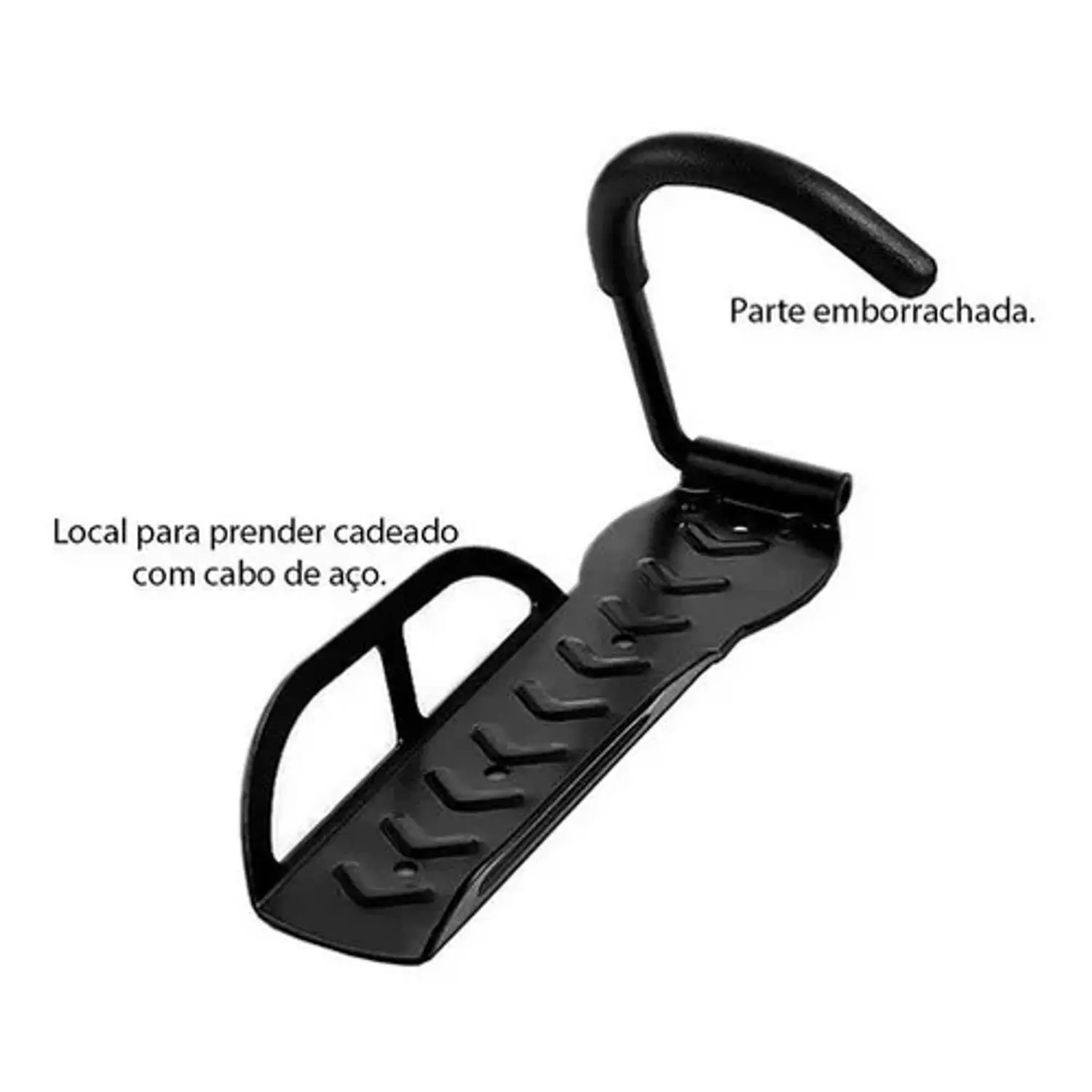 - Gancho revestido com borracha para evitar arranhões no Aro da Bike;